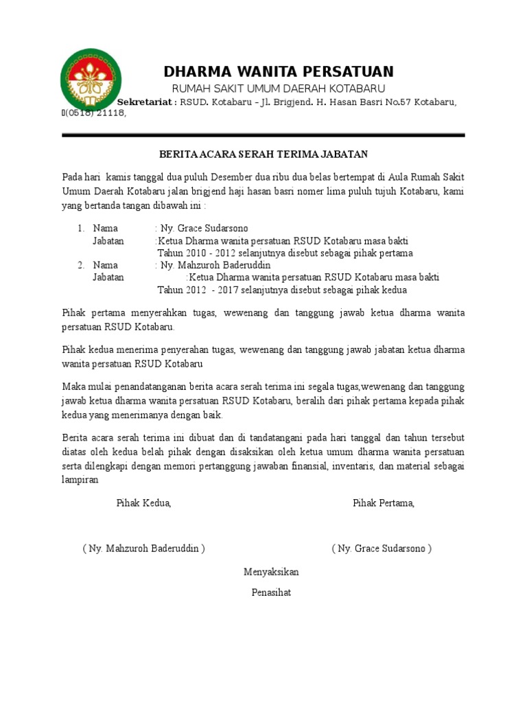 Dharma Wanita Persatuan Serah Terima Jabatan Pdf