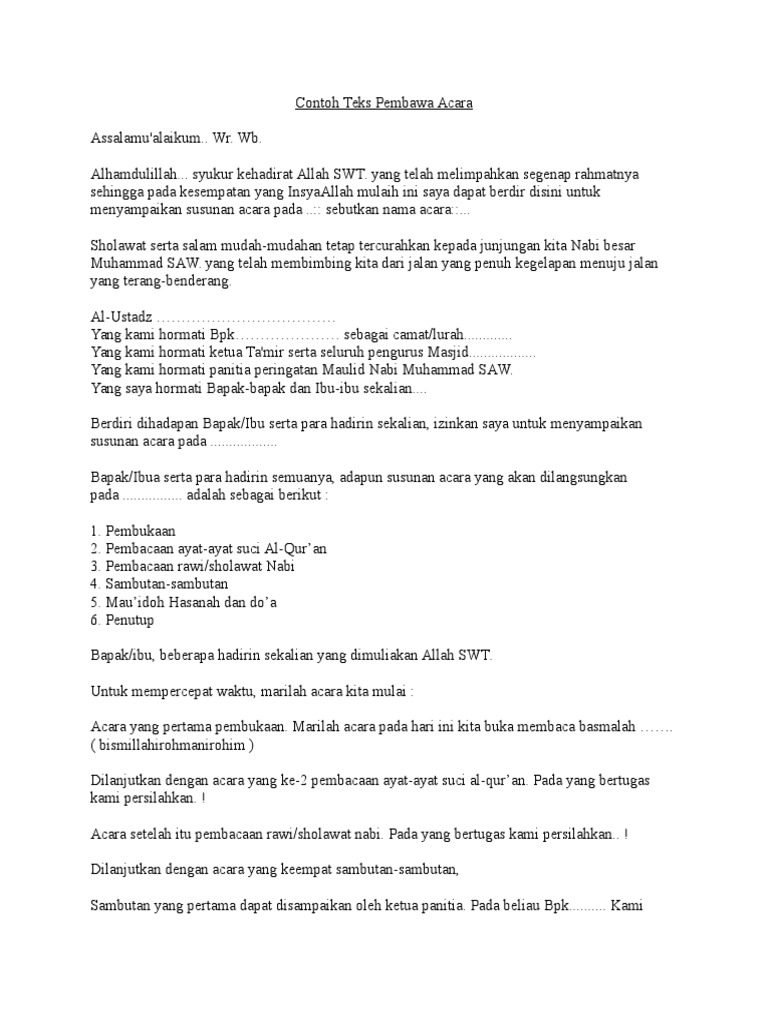 Contoh teks pembawa acara mc maulid nabi muhammad saw. Kumpulan Ilmu Dan Pengetahuan Penting Contoh Teks Pembukaan Pidato Pengajian. Teks Pembawa Acara Bahasa Jawa Krama Alus Kumpulan Referensi Teks Pidato.