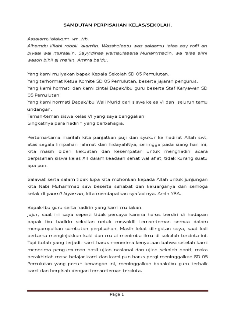 Apabila ada kata-kata yang kurang pantas mudah-mudahan BapakIbu berkenan memaafkannya. Wb Salam damai dan sejahtera untuk kita semua. Mulai dari contoh pidato perpisahan kelas 6 9 12 sekolah kampus mahasiswa jabatan pensiun dll.