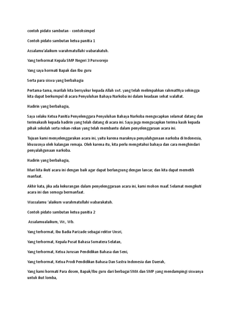 Contoh Pidato Sambutan Ketua Panitia 1 Pdf Document