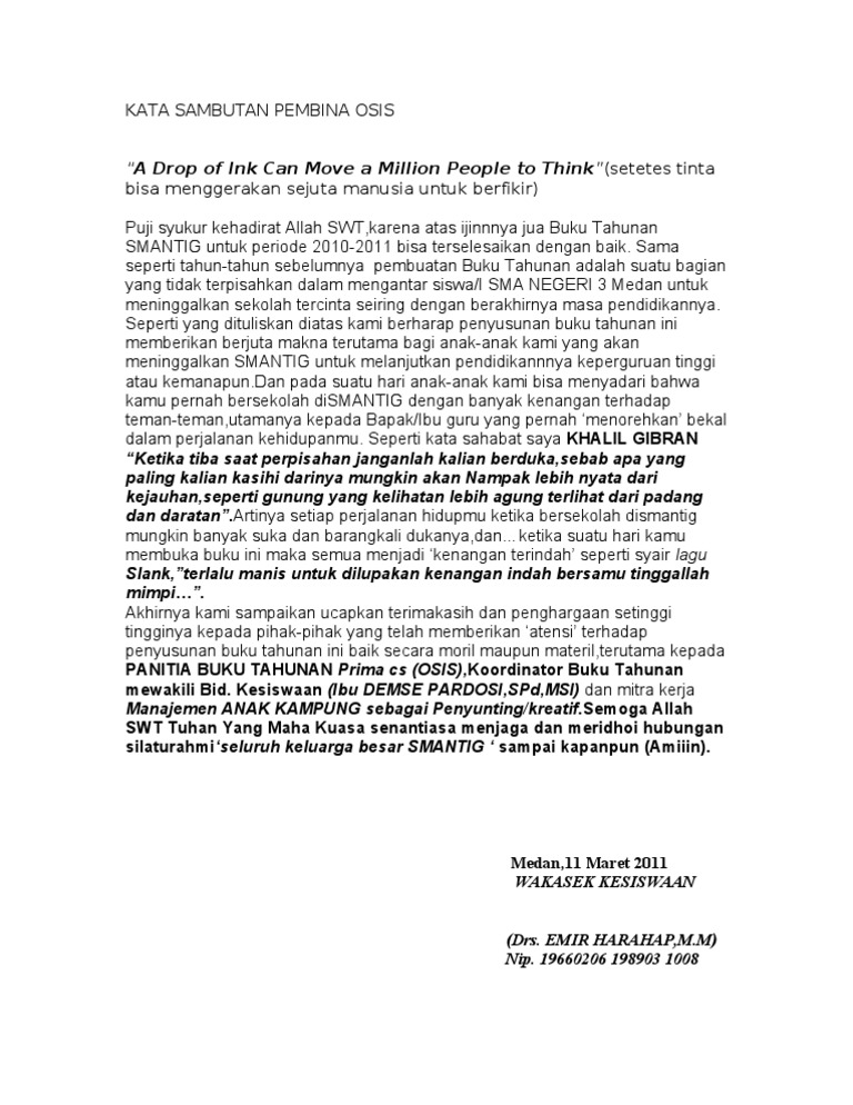Organisasi Siswa Intra Sekolah atau OSIS merupakan sebuah organisasi yang tidak asing bagi sekolah manapun. Berikut ini merupakan contoh teks pidato yang bisa menjadi bahan referensi untuk ketua Osis Lurah RlRw dll. Contoh Kata Sambutan Panitia Berbagai Acara Terbaru Baik Benar Bangmaul Com.