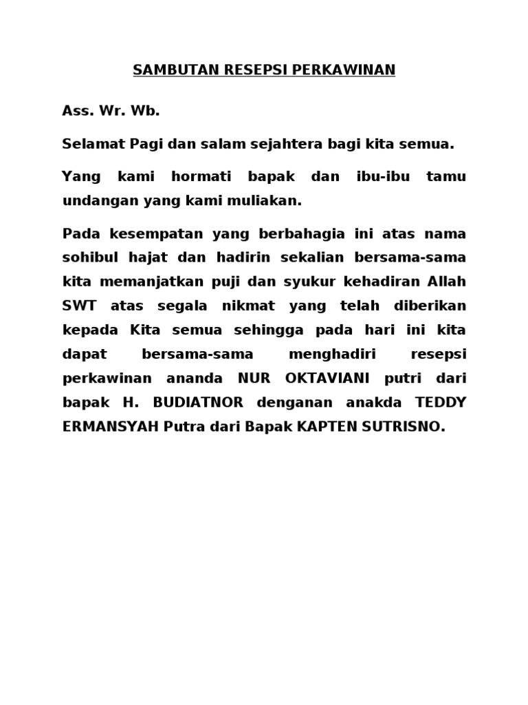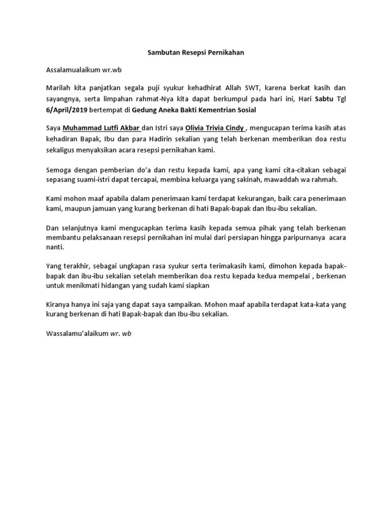 Pidato Sambutan Acara Resepsi Pernikahan Pdf
