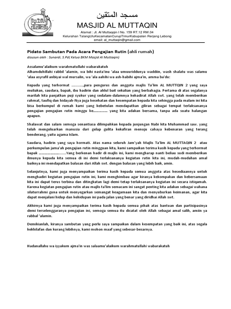 Pidato Sambutan Pada Acara Pengajian Rutin Wakil Tetamu Pdf