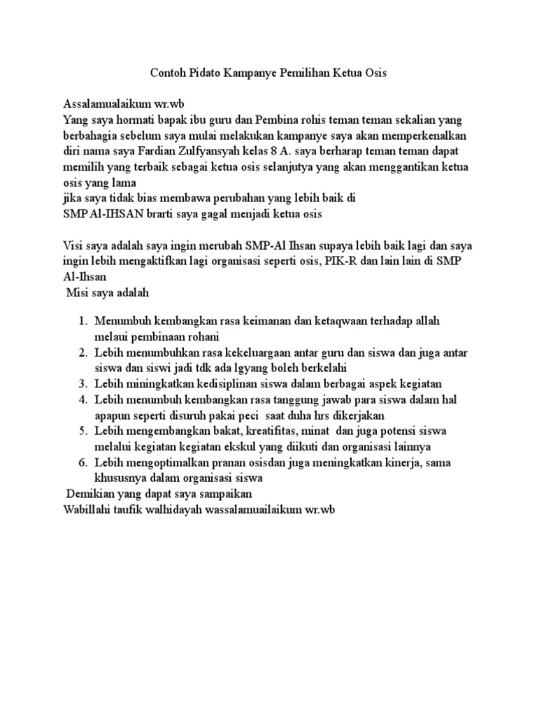 Contoh Pidato Kampanye Ketua Osis Pdf