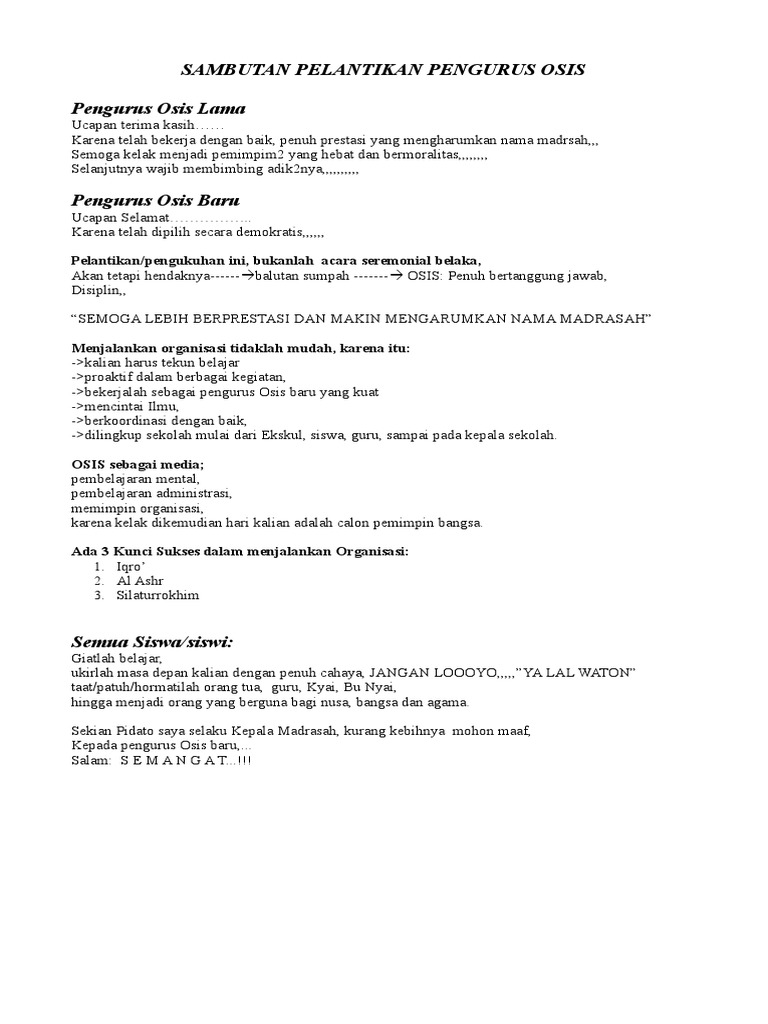 Contoh Pidato Singkat Sambutan Pasa Pelantikan Pengurus Osis Pdf Pdf