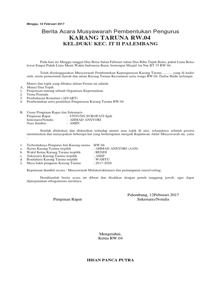 Berita Acara Pembentukan Karang Taruna