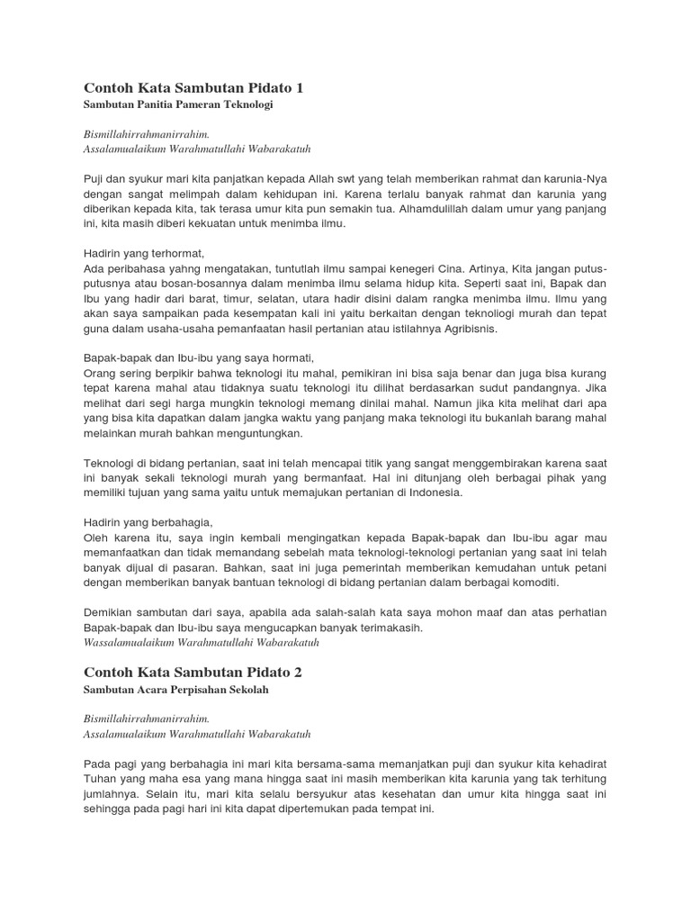 File berformat Microsoft Word Documents DOCRTF silahkan download secara gratis dan kembangkan kembali agar lebih sempurna. Demikianlah kata sambutan yang dapat saya sampaikan. Segala puji bagi Allah SWT yang telah memberikan nikmat kepada kita Shalawat serta salam bagi Nabi Muhammad.