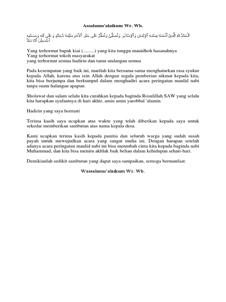 Pidato Sambutan Kepala Desa Acara Maulid Nabi Pdf