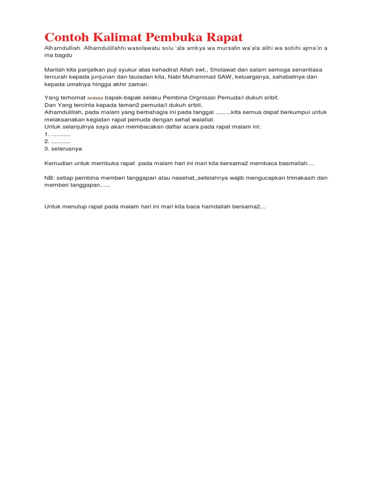 Contoh Kalimat Pembuka Rapat Pdf