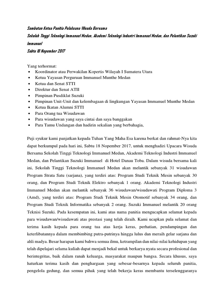 Sambutan Ketua Panitia Pelaksana Pada Wisuda Bersama Pdf