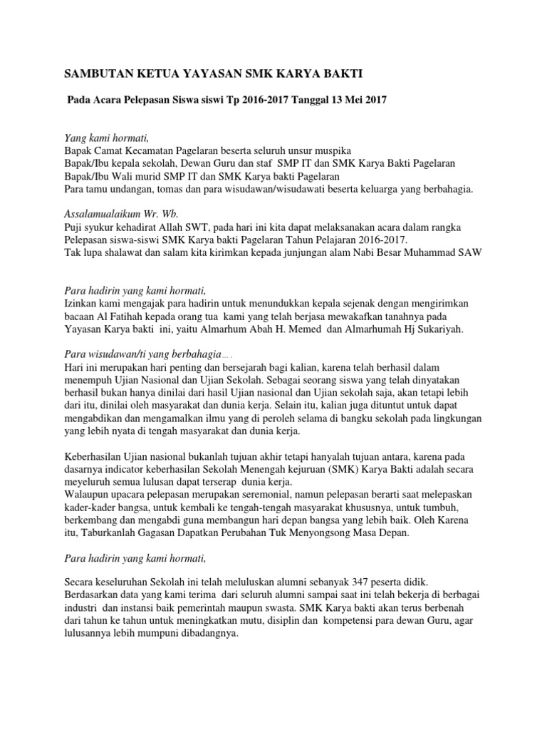 Sambutan Ketua Yayasan Smk Karya Bakti Pdf