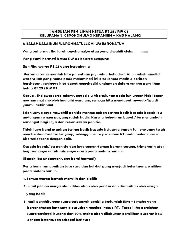 Contoh Sambutan Ketua Panitia Pemilihan Rt Pdf