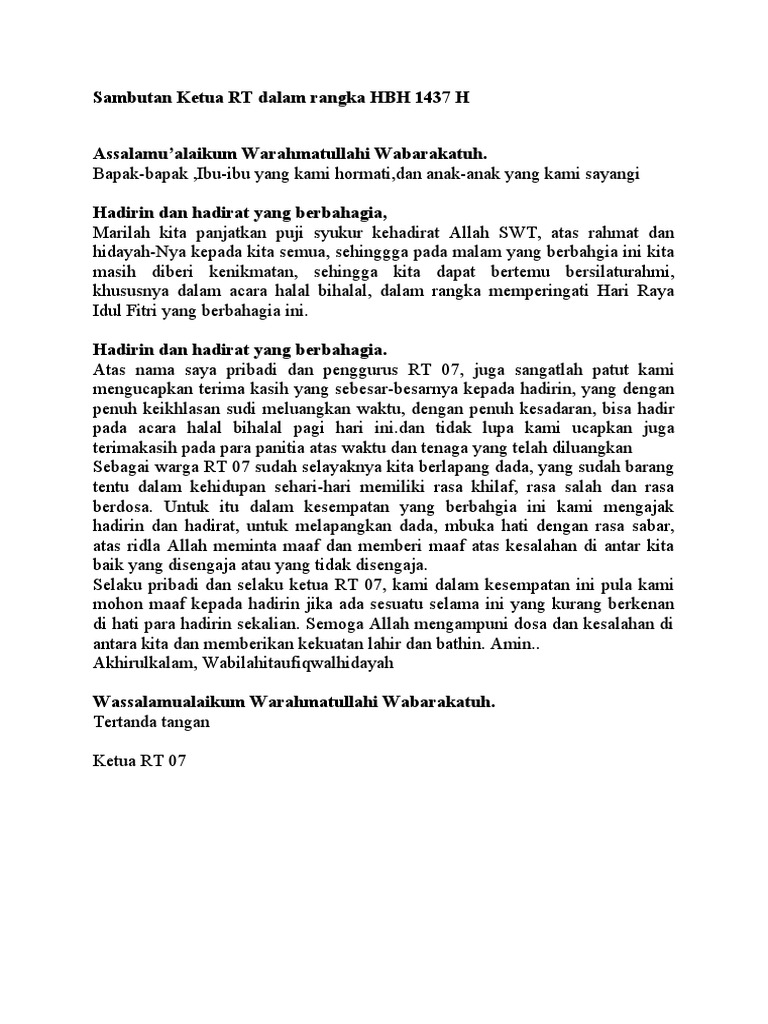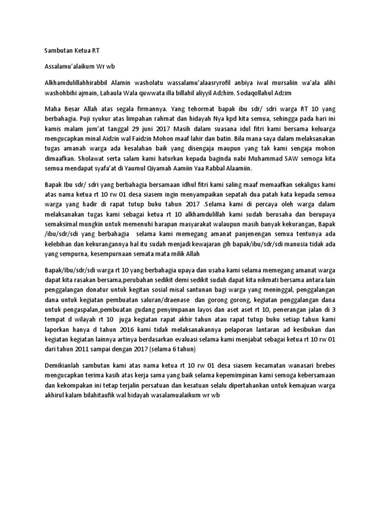 Sambutan Ketua Rt Dalam Rangka Hbh 1437 H Pdf