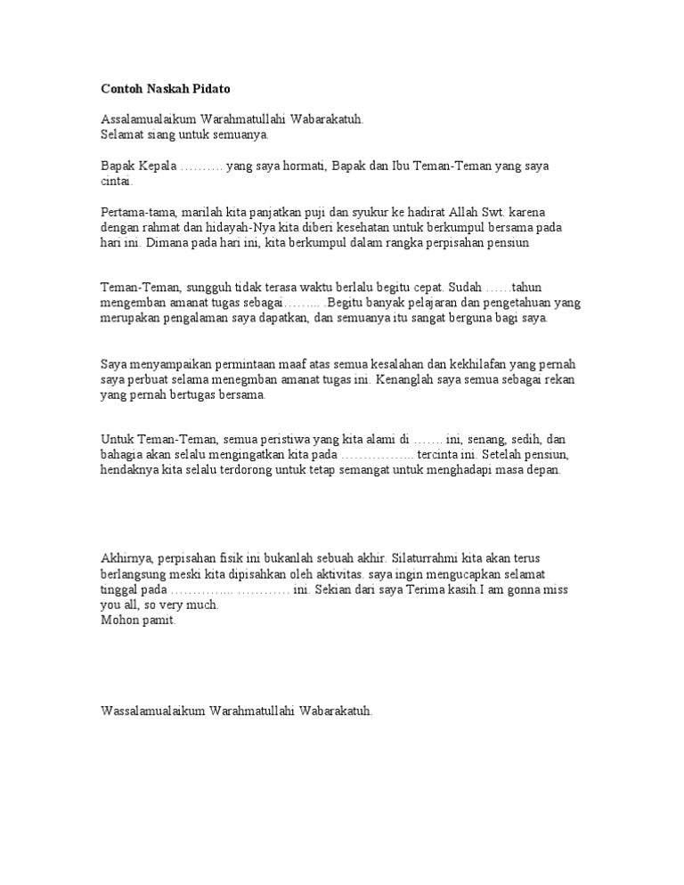 السلام عليكم ورحمة الله وبركاته الحمد لله الحمد لله نحمده و نستعينه و نستغفره و نعوذ بالله من سرور انفسنا و. Contoh kata sambutan Sambutan pasti ada disetiap Kita menghadiri suatu acara baik itu formal atau nonformal dalam suatu acara banyak sekali kata-kata sambutan yang biasanya disampaikan oleh tokoh penting dalam suatu acara tersebut misalkan. Yang terhormat Bapak Kapolsek Jamanis.