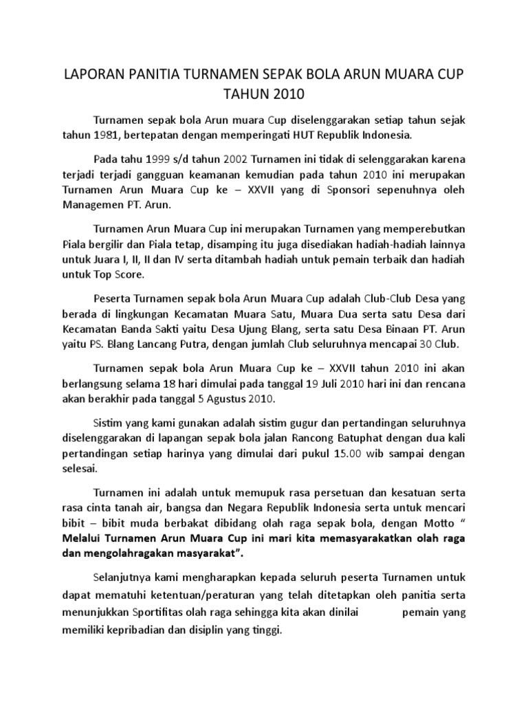 Contoh sk susunan kepanitiaan turnamen atau lomba. 5 Tips Cerdas Cara Membuat Laporan Kegiatan Yang Baik. Isi Pidato Ketua Panitia Turnamen Sepak Bola Bapak ibu dan para pemuda kampung yang saya sangat sayangi hari ini adalah pembukaan untuk turnamen sepak bola di Kampung kita.