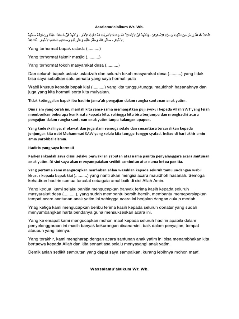Contoh Sambutan Acara Santunan Anak Yatim Pdf