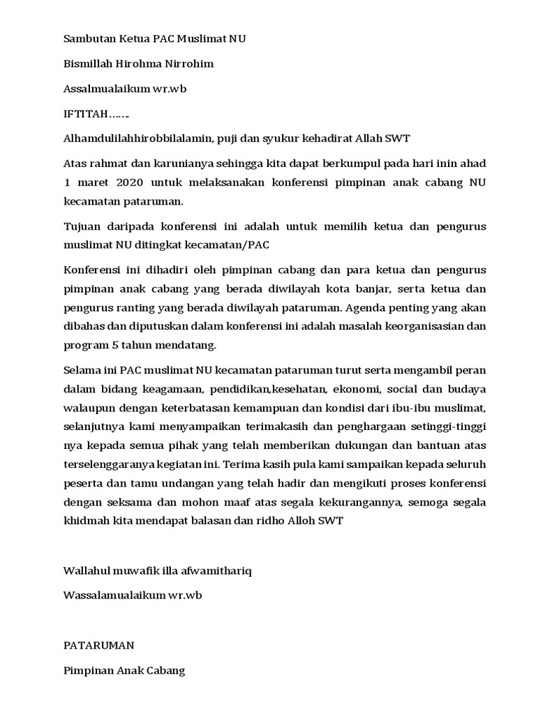Sambutan Ketua Pac Muslimat Nu Pdf