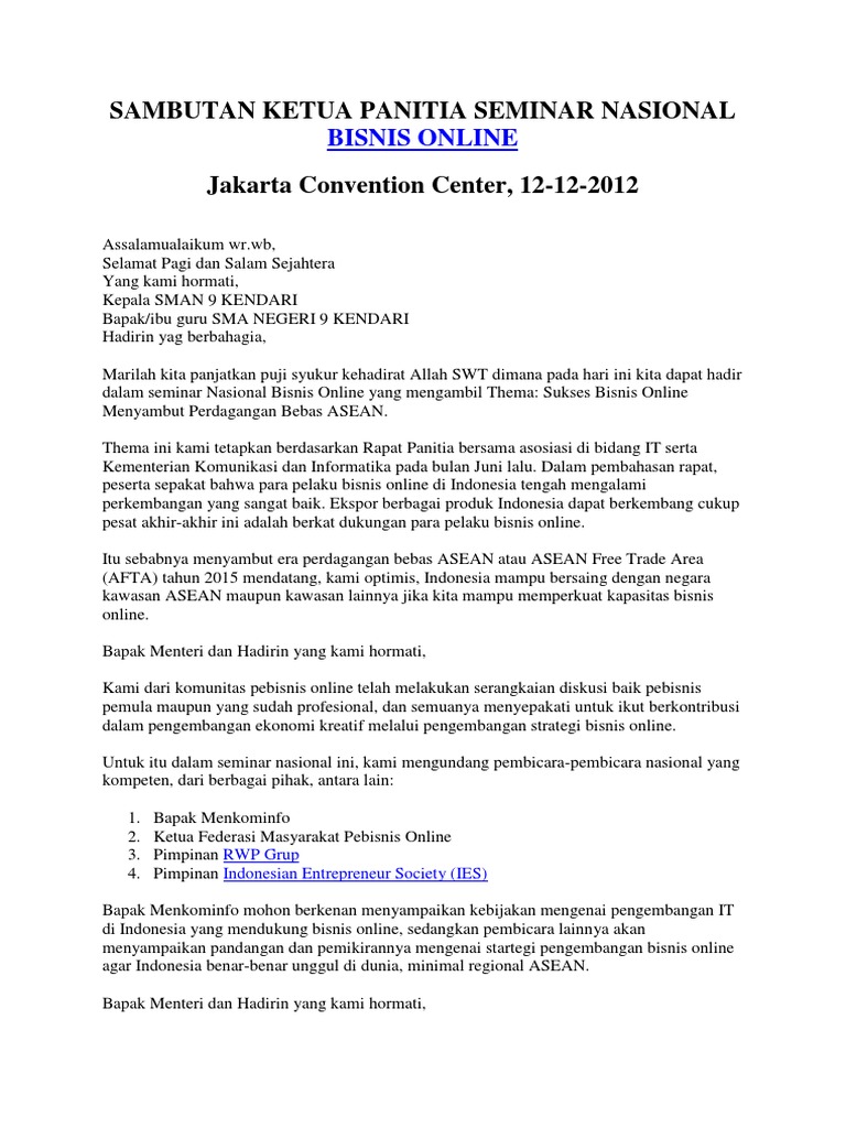 Sambutan Ketua Panitia Seminar Nasional Bisnis Online Pdf