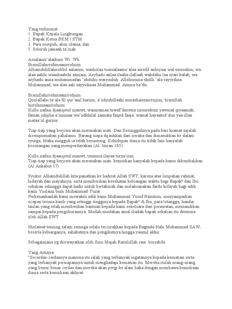 Kumpulan teks mc acara takziah terbaru. Kata-kata sambutan rapat Saat sebuah acara akan di mulai sering kali kita temui acara tersebut di awali dengan kata sambutan. Namun demikian takziah diutamakan dilakukan sebelum jenazah dikuburkan.