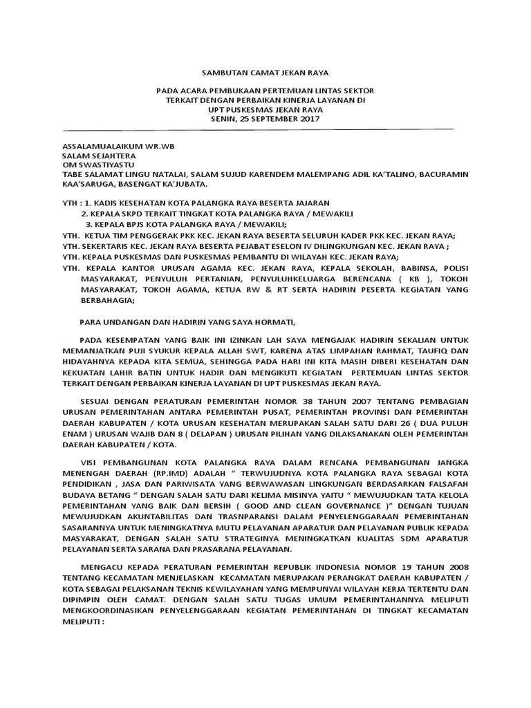 Sambutan 2 Lintas Sektor Jekan Raya Pdf