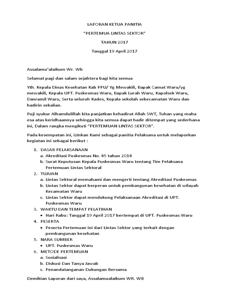 Laporan Ketua Panitia Lintas Sektor Pdf