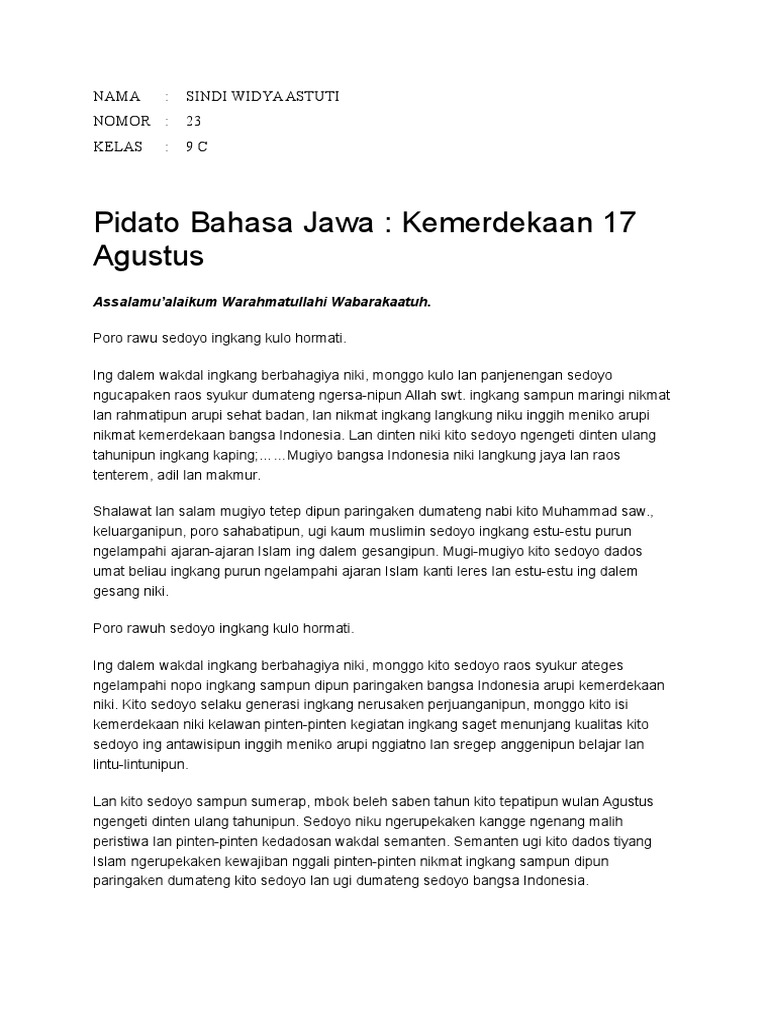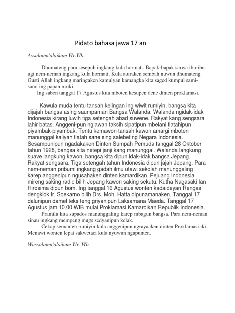 Maka dari itu silahkan simak beberapa contoh pidato tentang 17 agustus menggunakan bahasa jawa di bawah ini. Pidato 17 Agustus Dalam Bahasa Bali Anyar Dd. Diskon Payless 17 Agustus 2015.