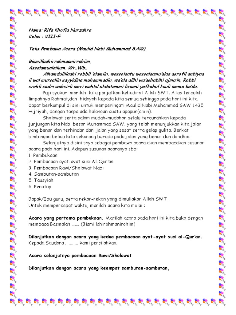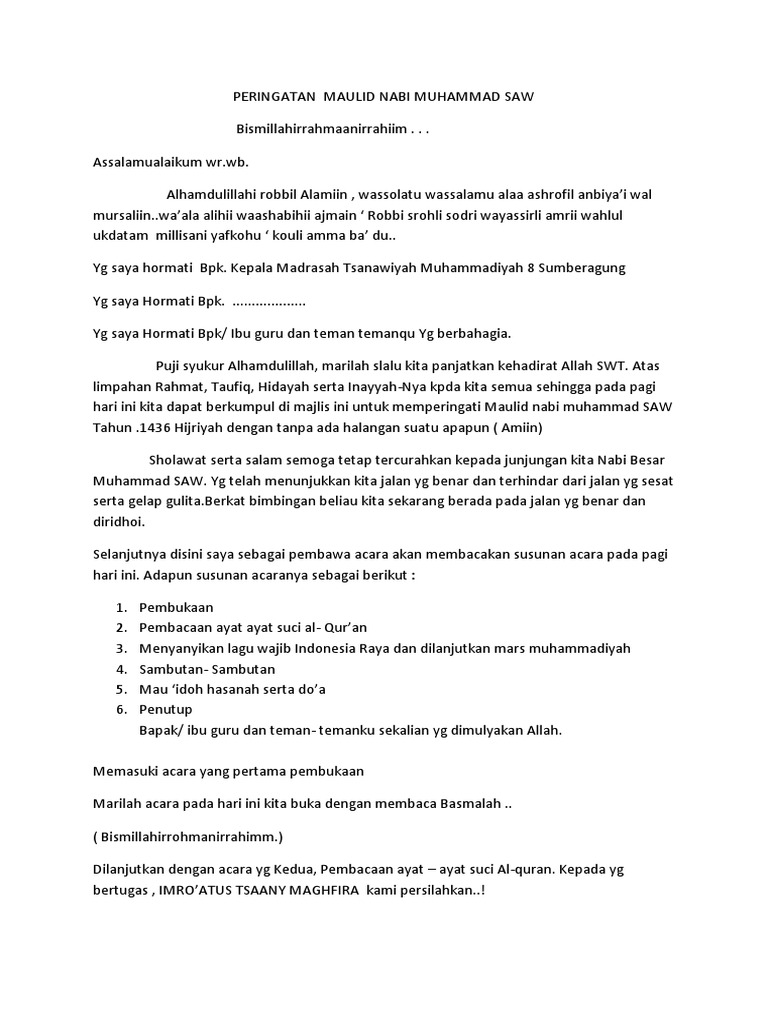 Teks Pembawa Acara Memperingati Maulid Nabi Pdf
