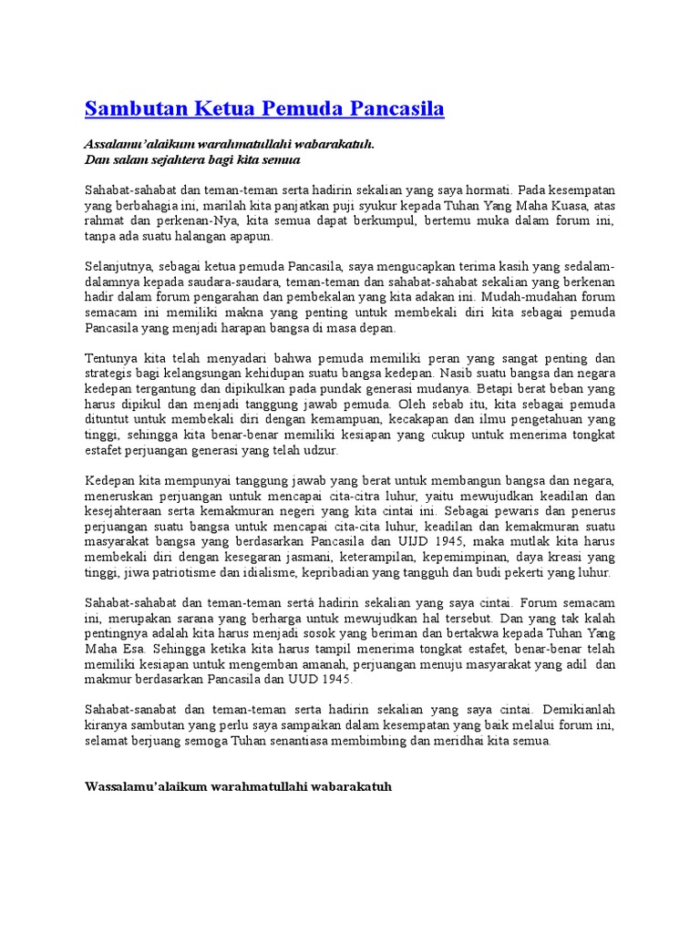 Teks sambutan ketua pemuda. Sambutan Ketua Panitia Kata sambutan merupakan salah satu agenda acara yang hampir selalu ada di setiap acara baik di lembaga formal maupun lembaga non formal pada acara-acara yang bersifat formal ataupun nonformal. Contoh Pidato Sambutan OSIS Acara MOS. Demikian rujukan yang sanggup kami berikan ihwal Teks Pidato Sambutan Ketua Panitia Singkat 7 Contoh Pidato Terbaik Semoga bermanfaat dan sanggup menjadi rujukan anda.