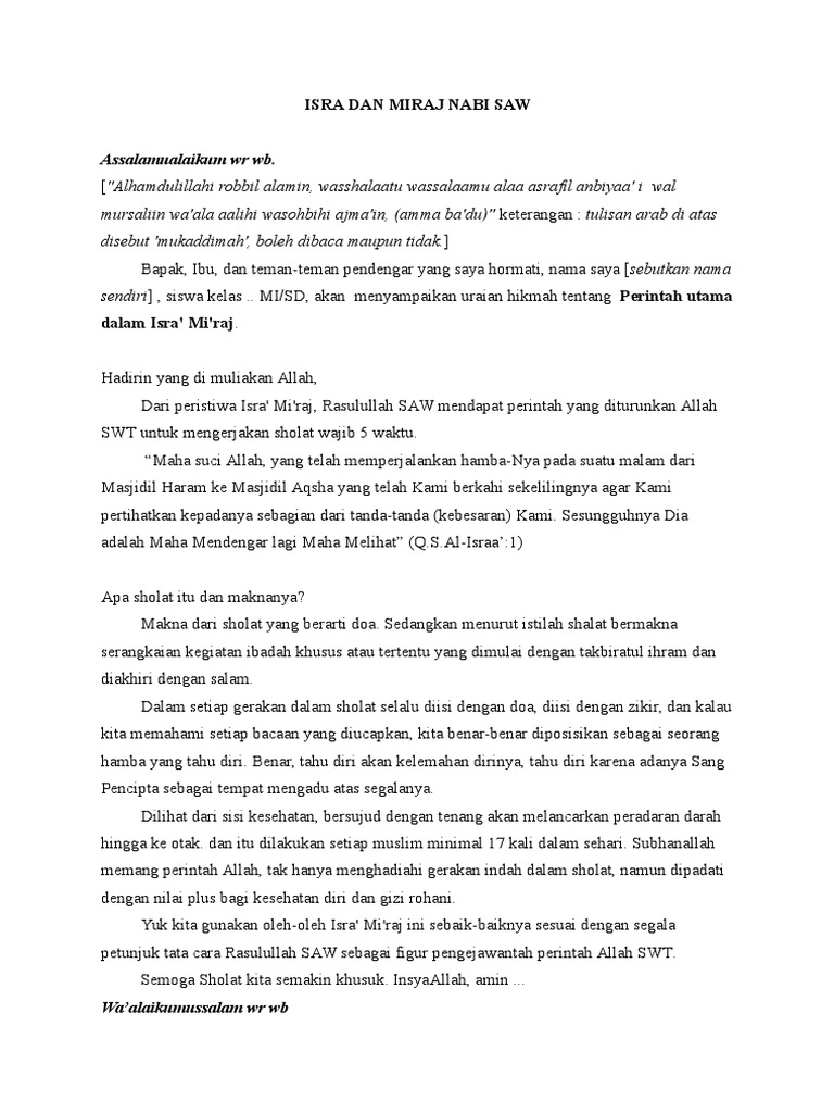 Contoh Pidato Isra Mi Raj Di Sekolah Singkat Pdf