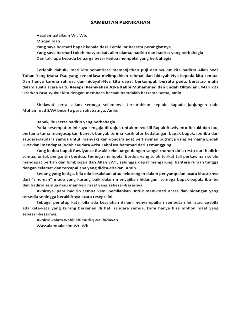 Pidato Sambutan Kepala Desa Acara Maulid Nabi Pdf