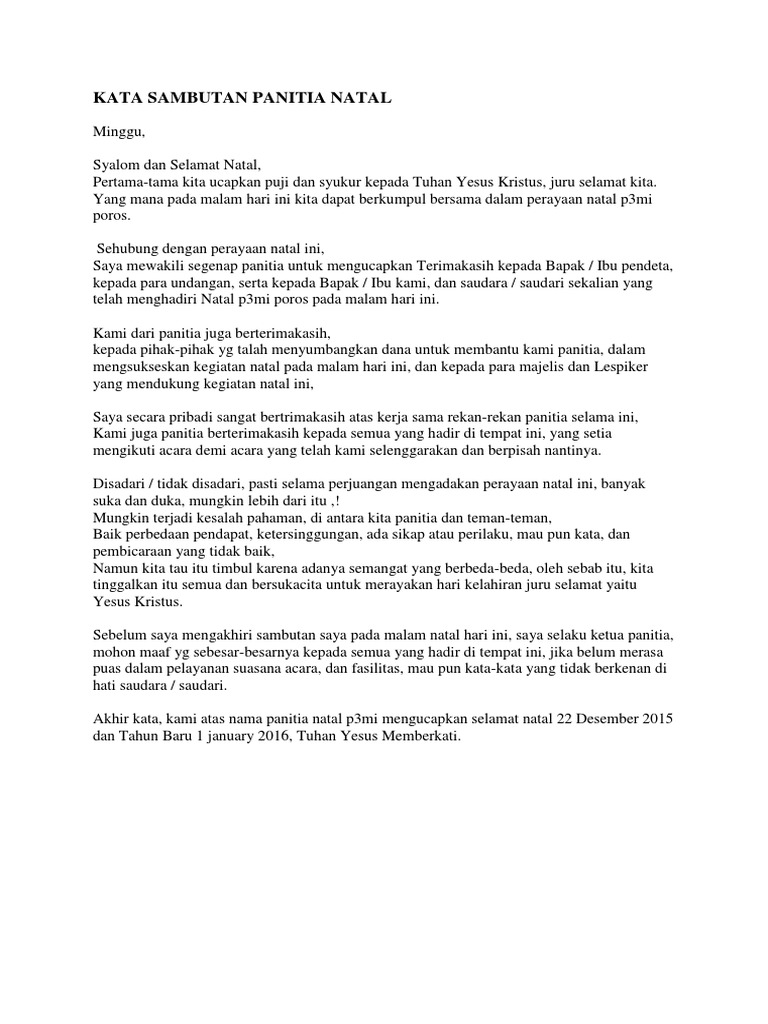 Kata Sambutan Panitia Natal Pdf
