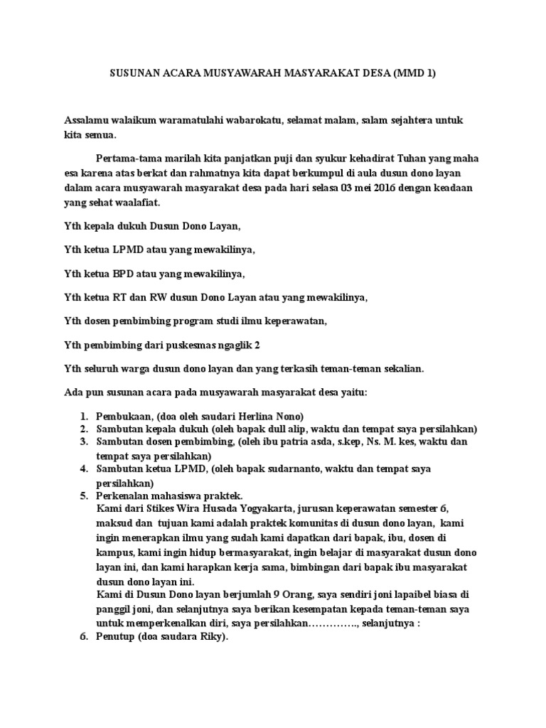 Susunan Acara Musyawarah Masyarakat Desa Pdf