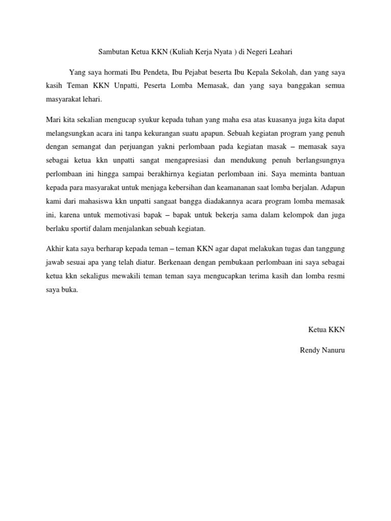 Teks Sambutan Ketua Kkn