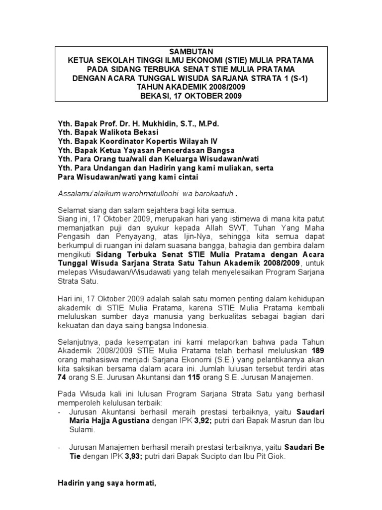 Contoh Sambutan Ketua Yayasan Pada Acara Wisuda Dapatkan Contoh