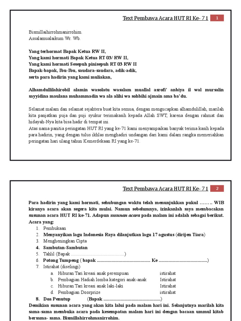 Contoh Naskah Pembawa Acara An Hut Kemerdekaan Ri Pdf