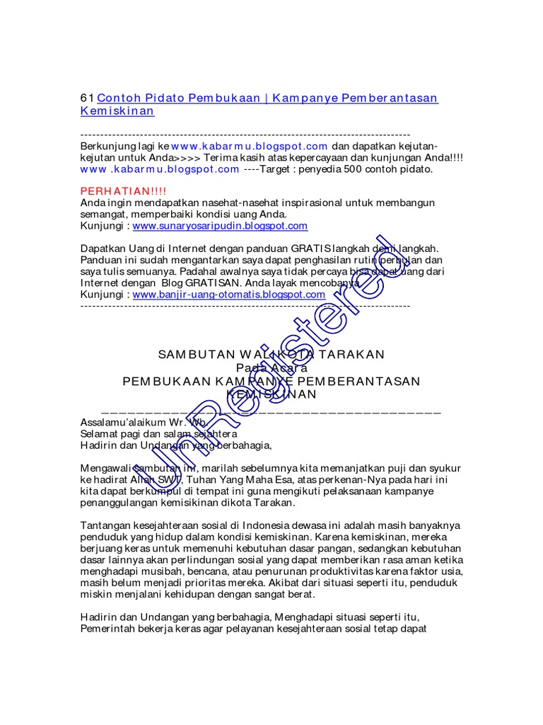 61 Contoh Pidato Pembukaan Kampanye Pemberantasan Kemiskinan Pdf