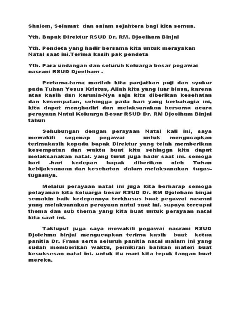 Contoh pidato kata sambutan Natal dan tahun baru 2. Devi Anita Subagyo Kata Sambutan Ketua Panitia Natal Jyf Oleh Devi. Sebagai informasi bahwa panitia natal lingkungan ini sudah terbentuk pada rapat yang pertama yang diadakan pada tanggal 6 November 2010 di.