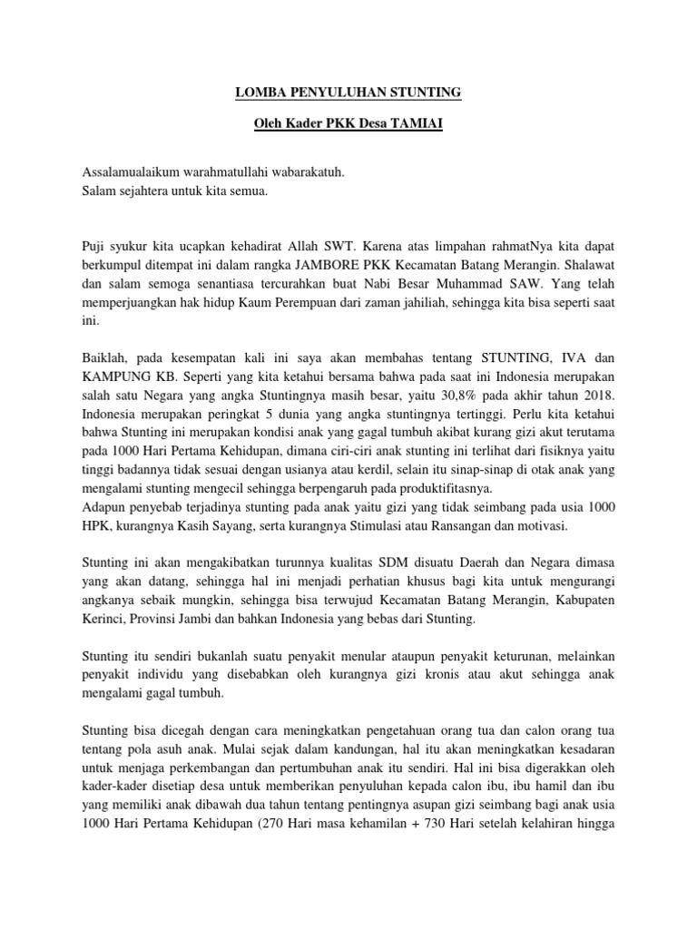 Lomba Penyuluhan Stunting Teks Pidato Pdf